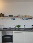 Küche: Herd, Töpfe, Kaffeemaschine, Kühlschrank, Mixer, Toaster, Wasserkocher